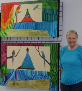Barbara Ann Gaboury, a member of the Redwater Art Society, stands beside two of her paintings...